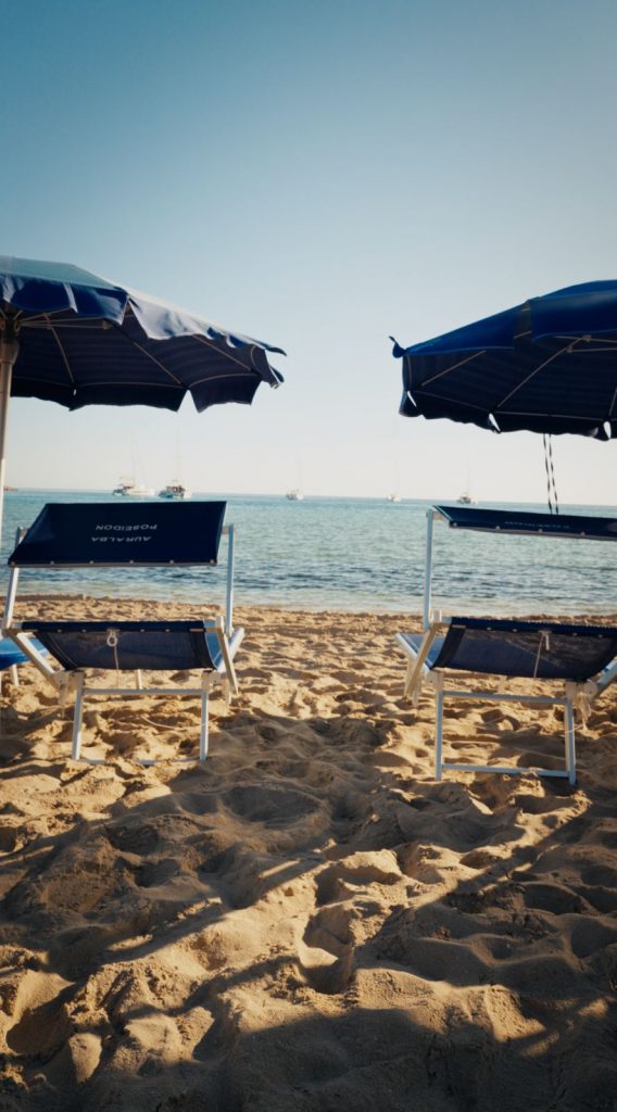 By booking our beach service, you’ll never have to rush at dawn to secure a spot or carry umbrellas and sunbeds. Our private beach is reserved exclusively for our guests: just wake up, and your sunbed and umbrella will be ready for you.